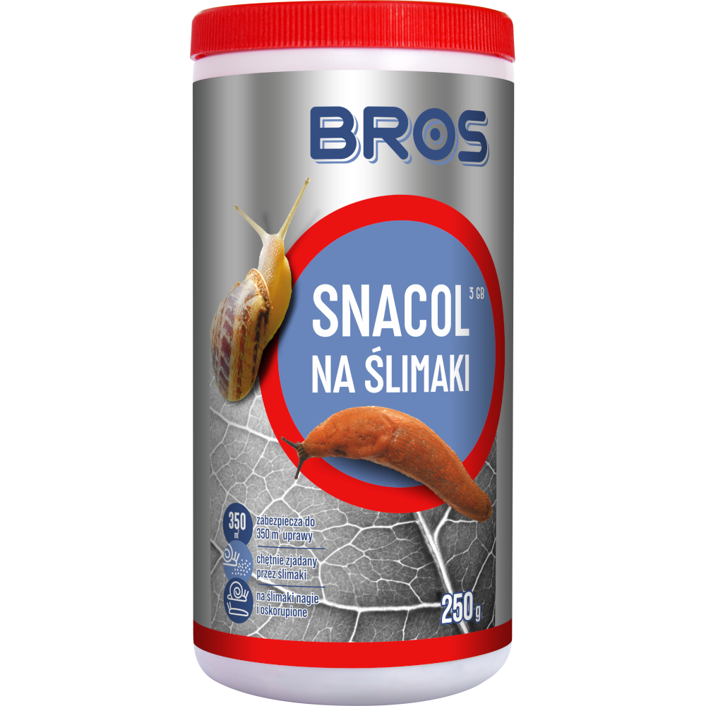 Snacol 3GB to efektywny, granulowany preparat do zwalczania ślimaków nagich i oskorupionych, który działa na zasadzie kontaktowo-żołądkowej. Środek ten jest przeznaczony do ochrony roślin uprawnych oraz ozdobnych, zarówno w warunkach polowych, jak i pod osłonami. Dzięki dodatkom substancji nęcących, Snacol skutecznie wabi ślimaki, a po spożyciu powoduje ich odrętwienie i śmierć w wyniku odwodnienia.