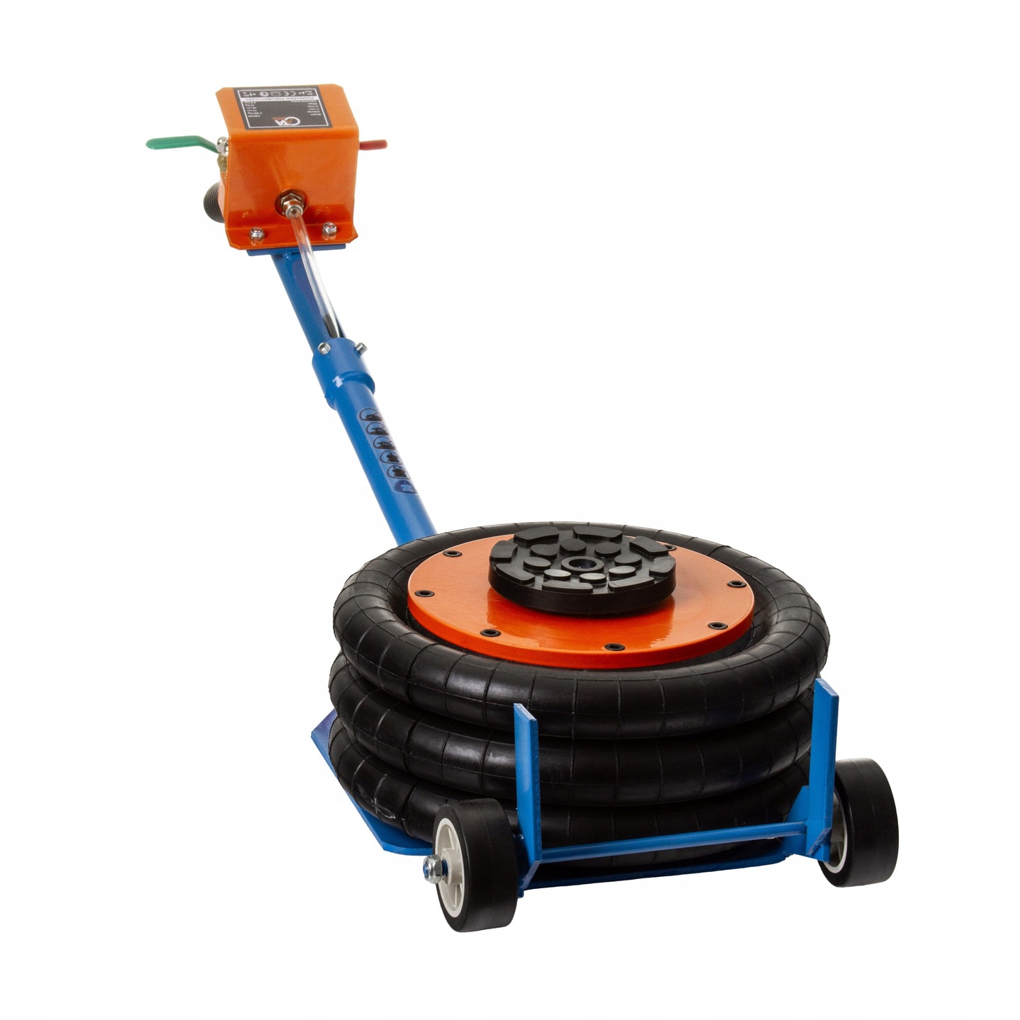 Warsztatowy podnośnik pneumatyczny 3,5T typu bałwanek, wykonany z bardzo wysokiej jakości materiałów. Podnośnik pneumatyczny jest przeznaczony do prac w których wymagane jest podnoszenie dużych ciężarów. Podnośnik przeznaczony jest do pracy w warsztatach samochodowych, wulkanizacjach, gospodarstwach rolniczych i miejscach gdzie występuje potrzeba podnoszenia urządzeń i maszyn.