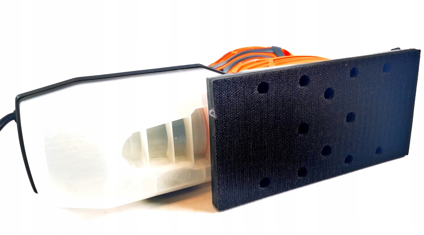 W celu lepszego odprowadzania pyłu w urządzeniu stosuje się papiery ścierne z otworami, jest to znacznie lepsze rozwiązanie niż odprowadzanie wyłącznie krawędziowe.